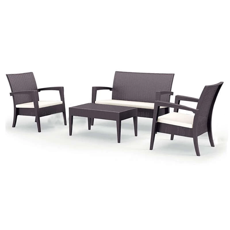 Σετ σαλονιού MIAMI του οίκου Siesta σε χρώμα brown,από υψηλής ποιότητας πολυπροπυλένιο με ενίσχυση από υαλώδεις ίνες (fiber glass) για απόλυτη αντοχή. Χωρίς μεταλλικό σκελετό για μεγαλύτερη αξιοπιστία στον χρόνο. Είναι στοιβαζόμενο και διαθέτει UV protection για μέγιστη προστασία από τον ήλιο ώστε να μην αλλοιωθούν τα χρώματα.Διατίθενται και μαξιλάρια.Κατάλληλο για εσωτερική και εξωτερική χρήση.Πιστοποιημένο προιόν από τον Ιταλικό οίκο CATAS.>128Χ77Χ89/72Χ76Χ89/92Χ53Χ43εκ.>ΠΟΛΥΠΡΟΠΥΛΕΝΙΟ>ΚΑΦΕ