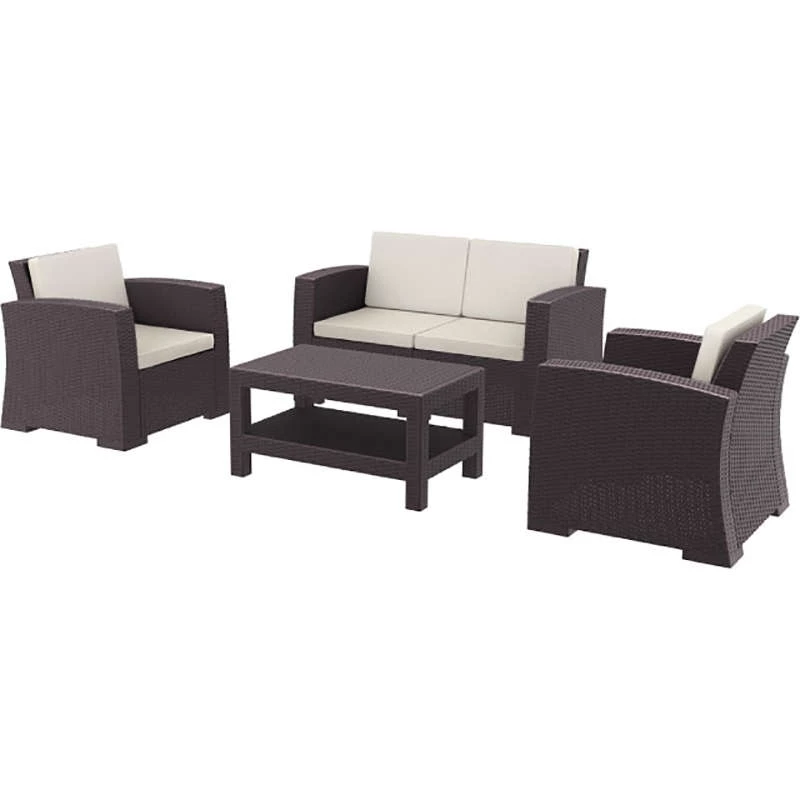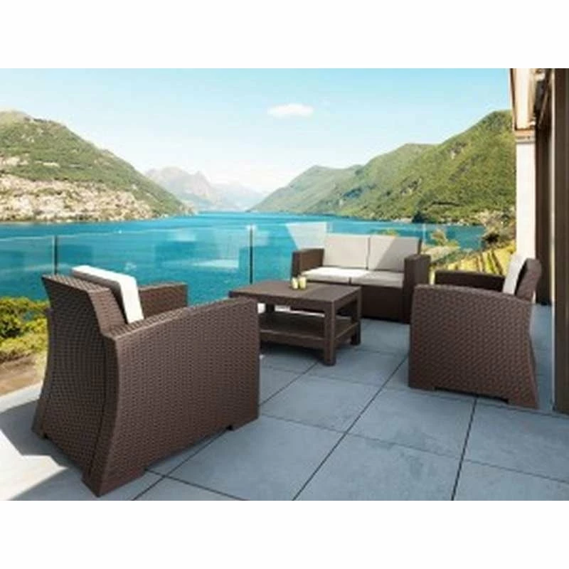 SET MONACO K/D του οίκου Siesta,σε χρώμα brown.Το SET περιλαμβάνει 1 2θέσιο καναπέ,2 πολυθρόνες,τραπέζι και μαξιλάρια.Από υψηλής ποιότητας πολυπροπυλένιο με ενίσχυση από υαλώδεις ίνες (fiber glass) για απόλυτη αντοχή. Χωρίς μεταλλικό σκελετό για μεγαλύτερη αξιοπιστία στον χρόνο. Διαθέτει UV protection για μέγιστη προστασία από τον ήλιο ώστε να μην αλλοιωθούν τα χρώματα. Κατάλληλο για εσωτερική και εξωτερική χρήση.Πιστοποιημένο προϊόν από τον Ιταλικό οίκο CATAS.>140Χ79Χ79/82Χ79Χ79/92Χ57Χ43εκ.>ΠΟΛΥΠΡΟΠΥΛΕΝΙΟ>ΚΑΦΕ