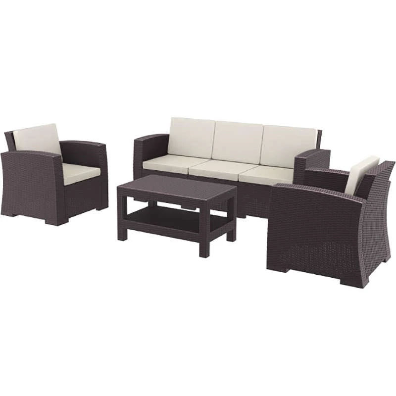 SET MONACO K/D του οίκου Siesta,σε χρώμα brown.Το SET περιλαμβάνει 1 3θέσιο καναπέ,2 πολυθρόνες,τραπέζι και μαξιλάρια.Από υψηλής ποιότητας πολυπροπυλένιο με ενίσχυση από υαλώδεις ίνες (fiber glass) για απόλυτη αντοχή. Χωρίς μεταλλικό σκελετό για μεγαλύτερη αξιοπιστία στον χρόνο. Διαθέτει UV protection για μέγιστη προστασία από τον ήλιο ώστε να μην αλλοιωθούν τα χρώματα. Κατάλληλο για εσωτερική και εξωτερική χρήση.Πιστοποιημένο προϊόν από τον Ιταλικό οίκο CATAS.>198Χ79Χ79/82Χ79Χ79/92Χ57Χ45εκ.>ΠΟΛΥΠΡΟΠΥΛΕΝΙΟ>ΚΑΦΕ