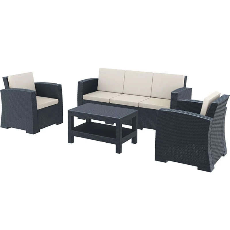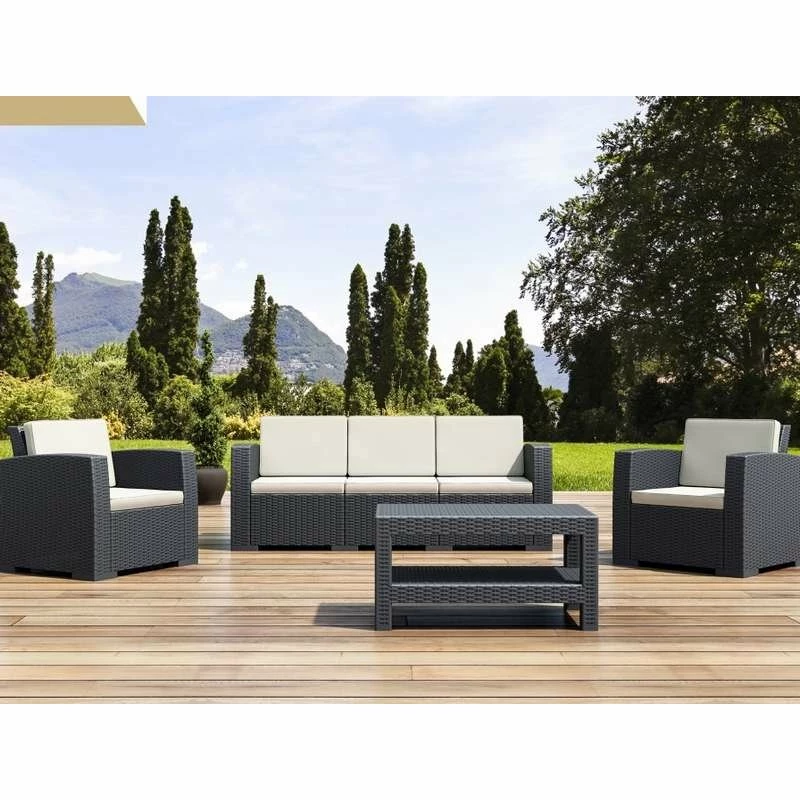 SET MONACO K/D του οίκου Siesta,σε χρώμα dark grey.Το SET περιλαμβάνει 1 3θέσιο καναπέ,2 πολυθρόνες,τραπέζι και μαξιλάρια.Από υψηλής ποιότητας πολυπροπυλένιο με ενίσχυση από υαλώδεις ίνες (fiber glass) για απόλυτη αντοχή. Χωρίς μεταλλικό σκελετό για μεγαλύτερη αξιοπιστία στον χρόνο. Διαθέτει UV protection για μέγιστη προστασία από τον ήλιο ώστε να μην αλλοιωθούν τα χρώματα. Κατάλληλο για εσωτερική και εξωτερική χρήση.Πιστοποιημένο προϊόν από τον Ιταλικό οίκο CATAS.>198Χ79Χ79/82Χ79Χ79/92Χ57Χ45εκ.>ΠΟΛΥΠΡΟΠΥΛΕΝΙΟ>DARK GREY