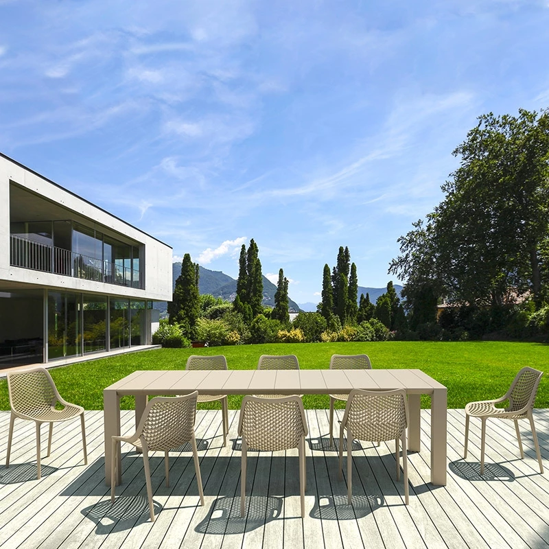 Set vegas τραπέζι 100X260/300 με 8 καρέκλες Air σε χρώμα taupe του οίκου Siesta.Κατασκευασμένα από πολυπροπυλένιο για απόλυτη αντοχή.Ένα set με ιδιαίτερο desing και άριστη κομψότητα ιδανικό για επαγγελματική και για οικιακή χρήση.Κατάλληλο για εσωτερικό και εξωτερικό χώρο.Διατίθεται σε χρώματα white,taupe,dark grey και black.>>ΠΟΛΥΠΡΟΠΥΛΕΝΙΟ>TAUPE
