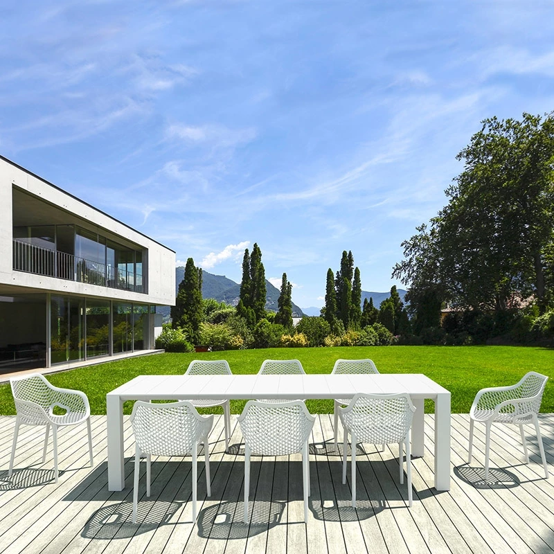 Set vegas τραπέζι 100X260/300 με 8 πολυθρόνες Air XL σε χρώμα white του οίκου Siesta.Κατασκευασμένα από πολυπροπυλένιο για απόλυτη αντοχή.Ένα set με ιδιαίτερο desing και άριστη κομψότητα ιδανικό για επαγγελματική και για οικιακή χρήση.Κατάλληλο για εσωτερικό και εξωτερικό χώρο.Διατίθεται σε χρώματα white,taupe,dark grey και black.>>ΠΟΛΥΠΡΟΠΥΛΕΝΙΟ>WHITE